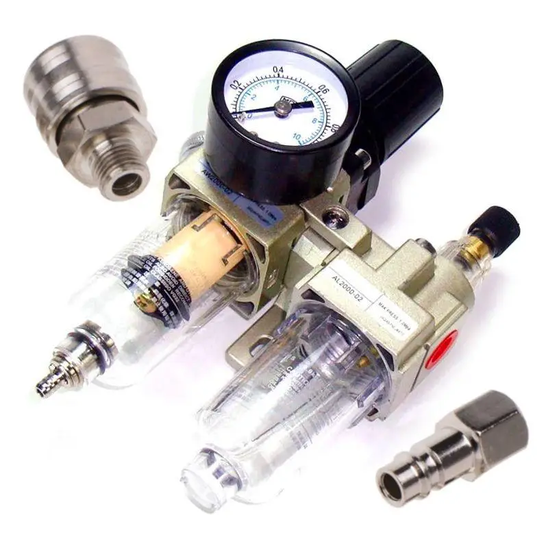 Перетягніть редуктор тиску повітря вгору регульований клапан. Поверніть за годинниковою стрілкою, щоб збільшити тиск; поверніть регульований клапан проти годинникової стрілки, щоб зменшити тиск і заблокувати регулятор тиску повітряного фільтра. висока функціональність сепаратор води редуктора стисненого повітря забезпечує чисте та сухе повітря, а аксесуари для пневматичних інструментів завжди захищають встановлення стисненого повітря від механічного забруднення та води.