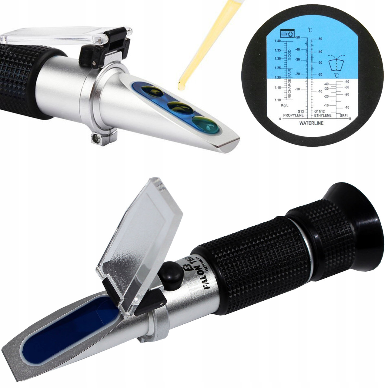 Професійний рефрактометр для вимірювання робочих рідин легкових, вантажних автомобілів і автобусів. Призначений для визначення температури замерзання рідини для омивача лобового скла, пропіленгліколю та етиленгліколю. Він також забезпечує діапазон щільності електролітів.